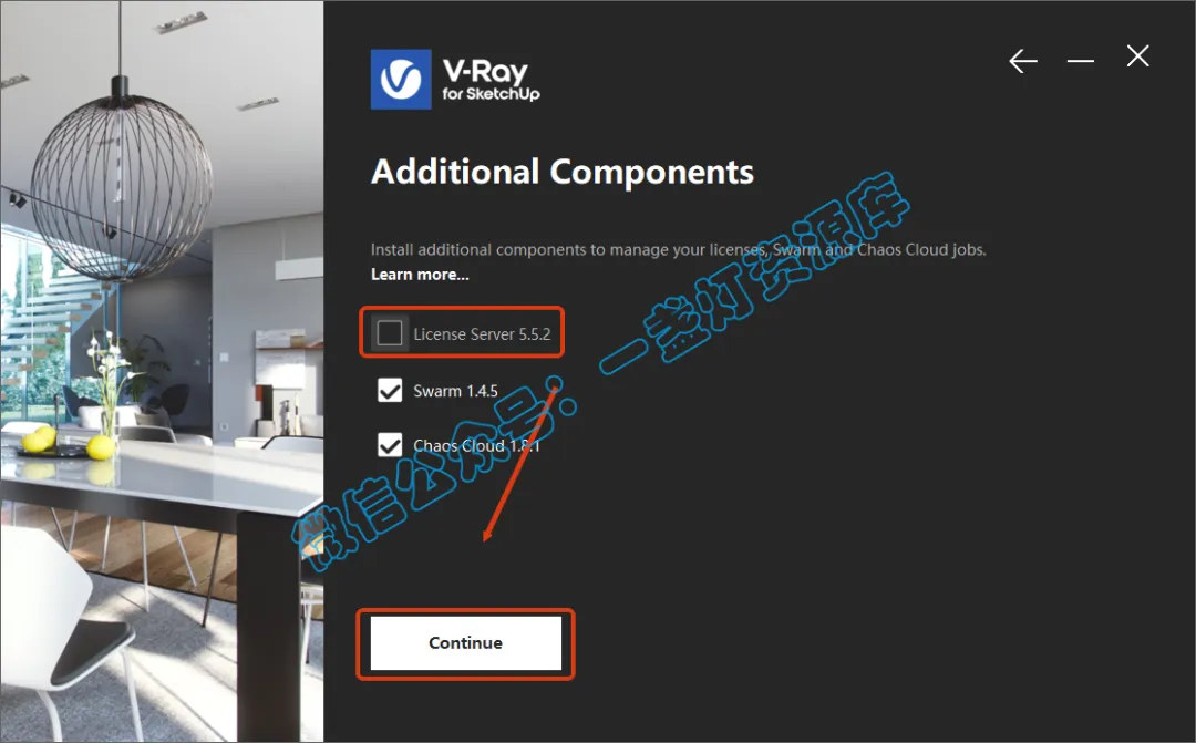 5.取消勾选【License Server5.5.2】,点击【Continue】。