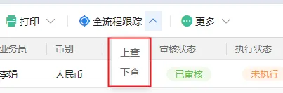 综上,“全流程跟踪”适合查询关联单据不多时的明细,当单据很多,且单据间有多对多关系时,更适合用“上查/下查”来精准查询关联单据。