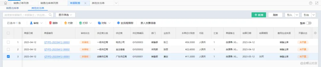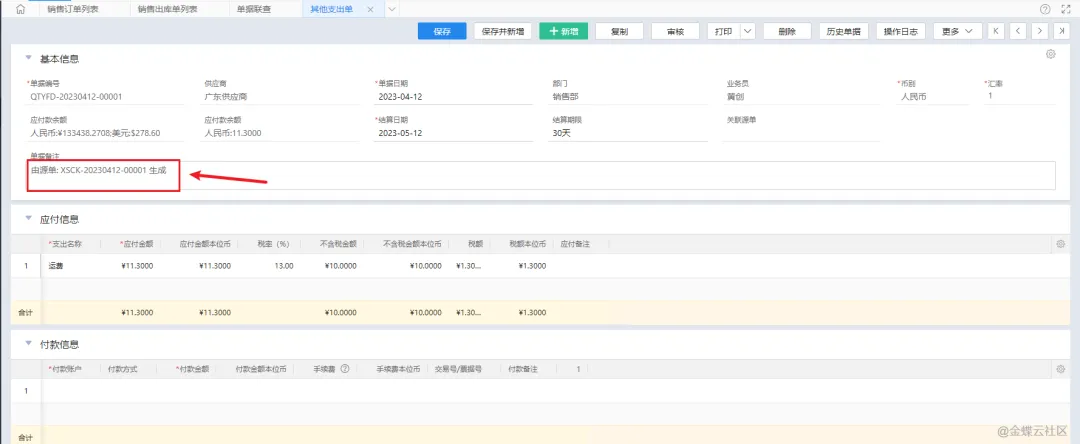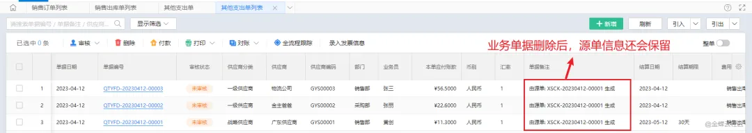 回答:支持,只要是单据审核后自动生成的其他支出单,通过对业务单据全流程跟踪都可以查到这张关联的其他支出单,