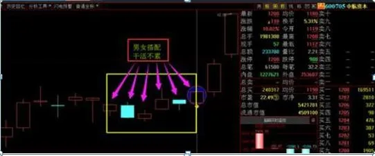 男女搭配,干活不累是玩笑了,主力利用阴阳K线组合完成洗盘,最后走拉升行情模式。