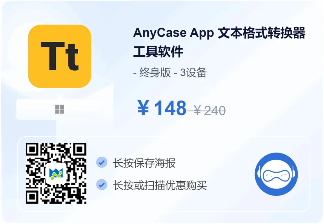 AnyCase App 是一款功能强大、操作简便的文本大小写转换工具,免费试用版已满足大部分日常需求,付费版解锁更多高级功能,性价比超高。