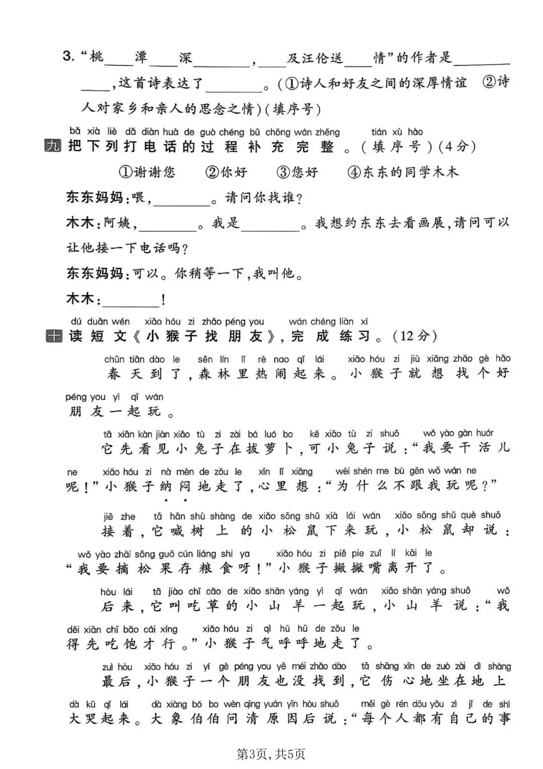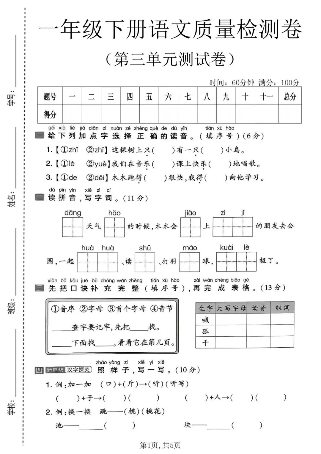 你好呀,我是谷粒!今天为大家带来26春一年级下册语文《第三单元测试卷》,紧扣部编版教材知识点,覆盖生字、词语、句子、阅读理解等常考题型,全面检验孩子单元学习效果。