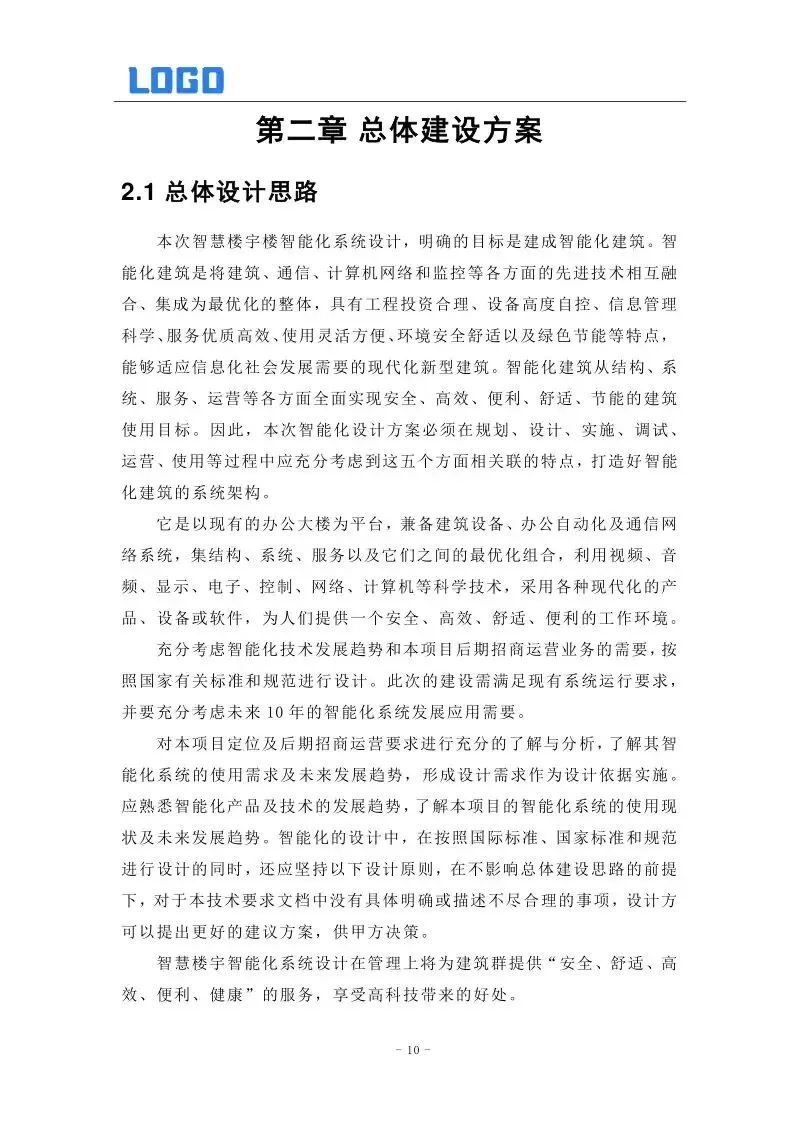 智慧楼宇总体规划建设方案文档,智慧大楼技术方案书(Word)