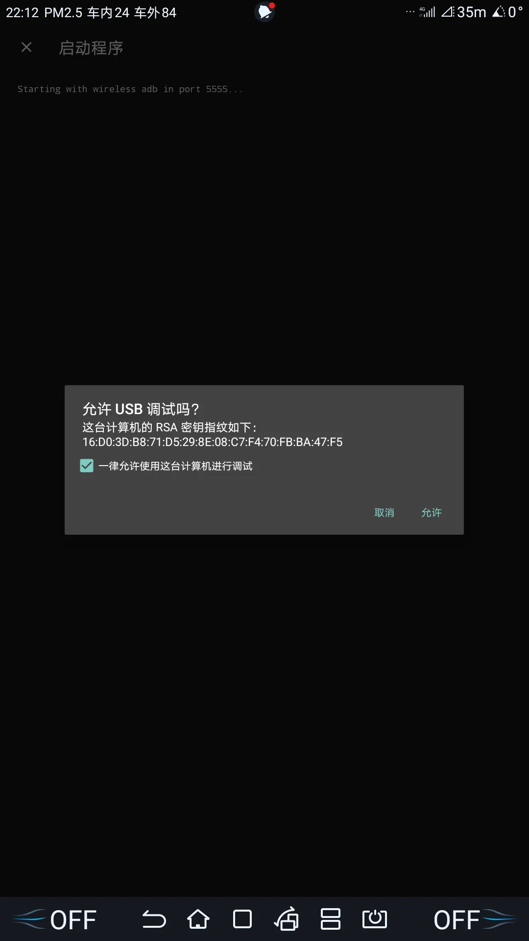 出现弹窗允许 USB 调试,并等待命令运行完成