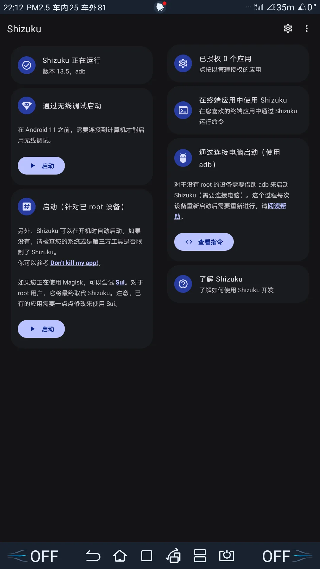 命令完成后,会显示 Shizuku 正在运行