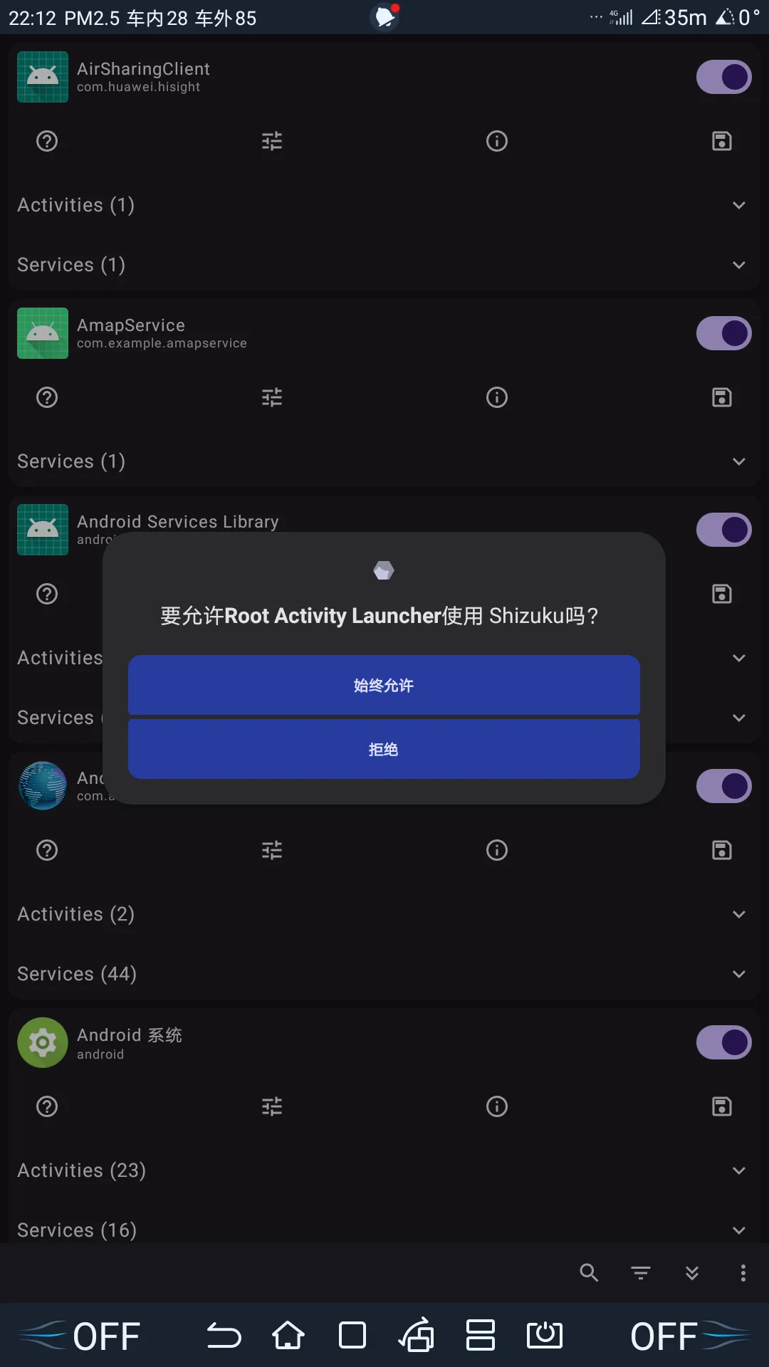 最后一步就是利用 RootActivityLauncher 启动比亚迪 App 中隐藏的界面。首先授权该 App 使用 Shizuku: