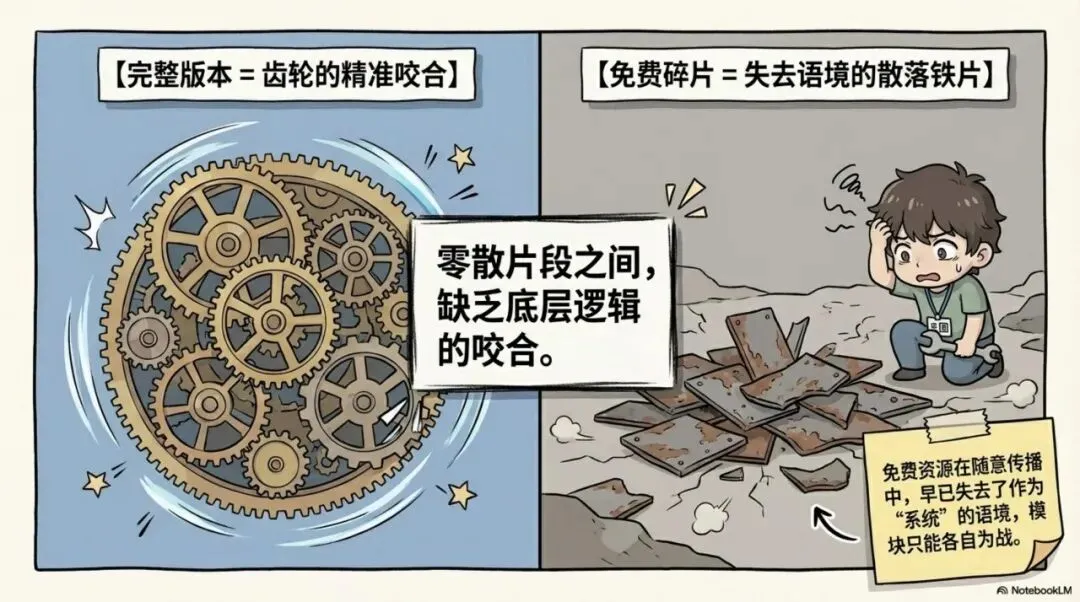 如果把这件事说得再直一点,其实就一句话:完整版本是齿轮的咬合,免费碎片只是一地散落的铁片。