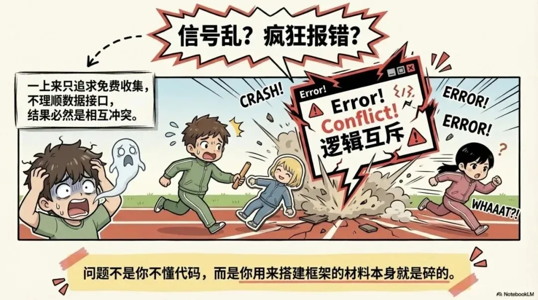 这就意味着,模块本来就是相互咬合的,不是各自为战的。 所以如果一上来只追求免费收集,而不去理顺它们版本是否匹配、变量是否互通,很多人就会自然觉得为什么信号不仅乱,还会报错;再想往深了理顺,又发现模块之间根本没有数据接口。问题不是你不懂代码,而是你用来搭建框架的材料本身就是碎的。