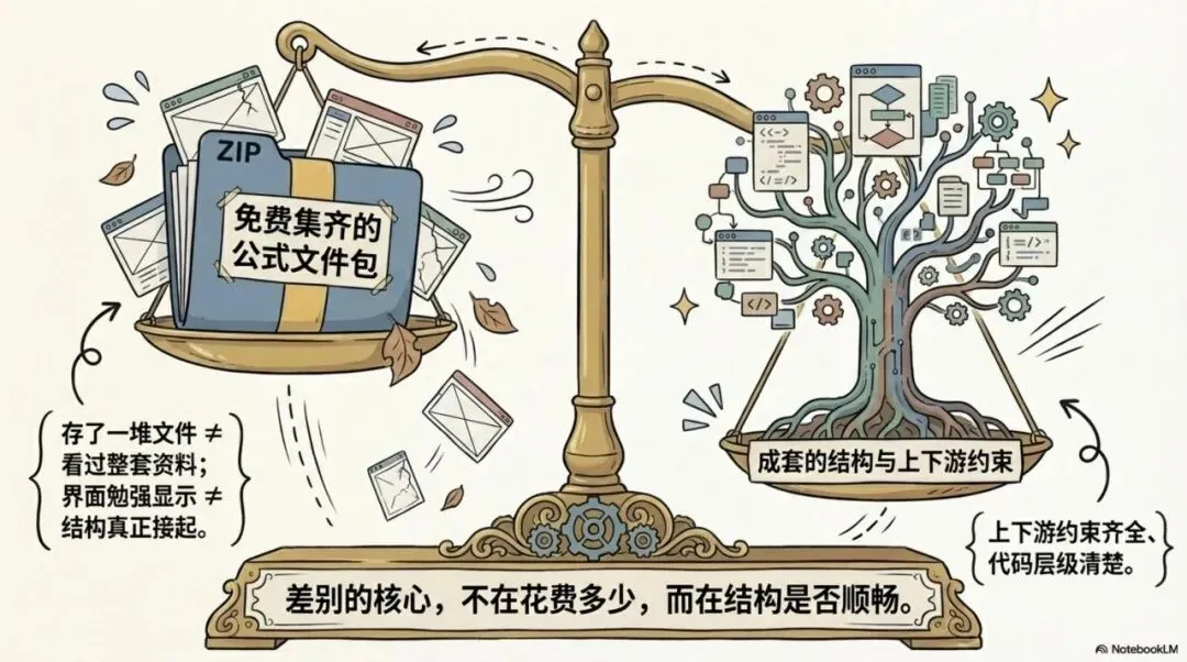 因为这类内容最容易出现的误区,就是拿着一堆免费捡来的零散片段反复修补,反而误以为自己赚到了。真往下拆,很多差别其实都不在花费的多少上,而在资料是不是成套、上下游的约束是不是齐全、代码的层级是不是清楚。