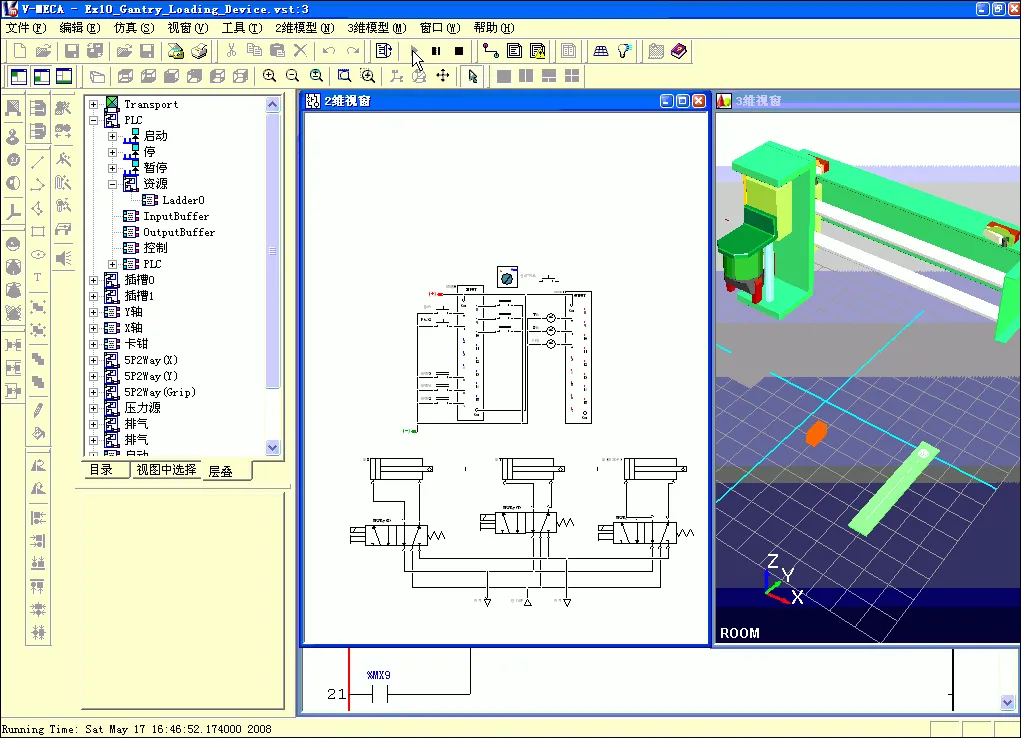 V-MECA虚拟机电一体化模拟系统包括电气、气动、PLC等元件的机电系统的设计,分析进行虚拟仿真。