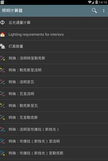 照明计算器APP是一款非常不错的手机计算工具软件,该软件对电子类专业人士还是非常有帮助的,这里支持各种如电阻降低电压、阻力为主导、功率因数校正、电压电流等等数据的计算。
