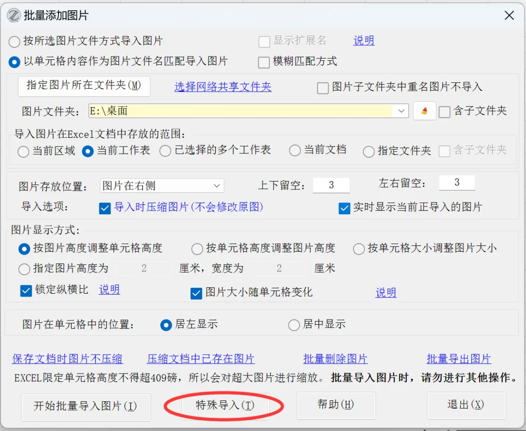 相关链接:批量将图片导入EXCEL/wps表格,还可在导入时压缩图片,支持合并单元格
