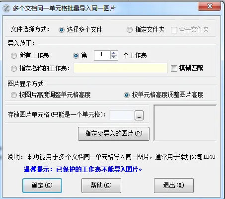 EXCEL必备工具箱–导入图片功能功能的附加功能,对多个文档同一单元格批量导入同一图片,通常用于批量导入LOGO