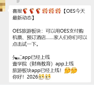 OES旅游板块:可以用OES支付购机票、预订酒店……家人们你们可以点击试一下。