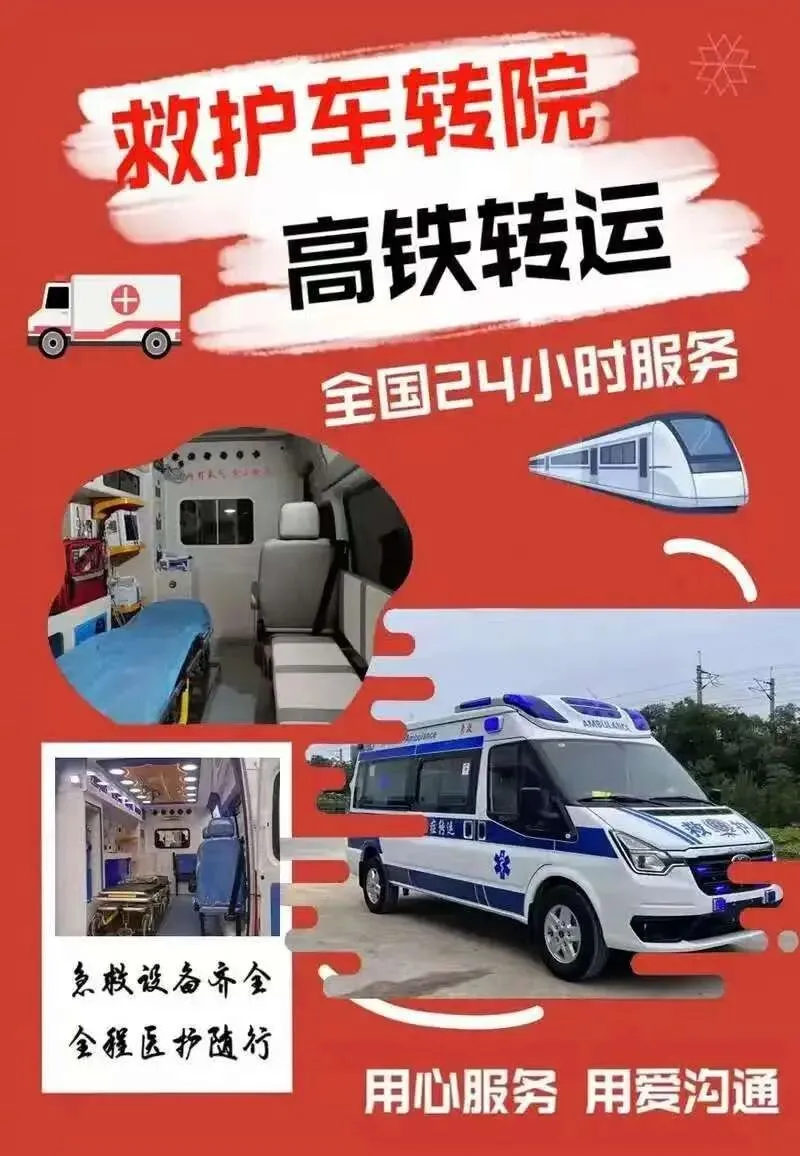 中福救护车出租转运公司,120非急救救护车接送病人预约护送。24小时为术后康复、危重患者及跨区域就医人群提供专业医疗转运服务,提供120救护车出租‖救护车转运‖私人120救护车(非急救)‖跨省长途转运‖危重病人转运‖市内转运‖术后康复病人转运‖高铁病人转运‖患者返乡‖大型活动赛事保障‖配备ICU设备:呼吸机▪心电监护仪▪吸痰器•微量泵•氧气▪急救药箱▪专业医护团队;就近派车