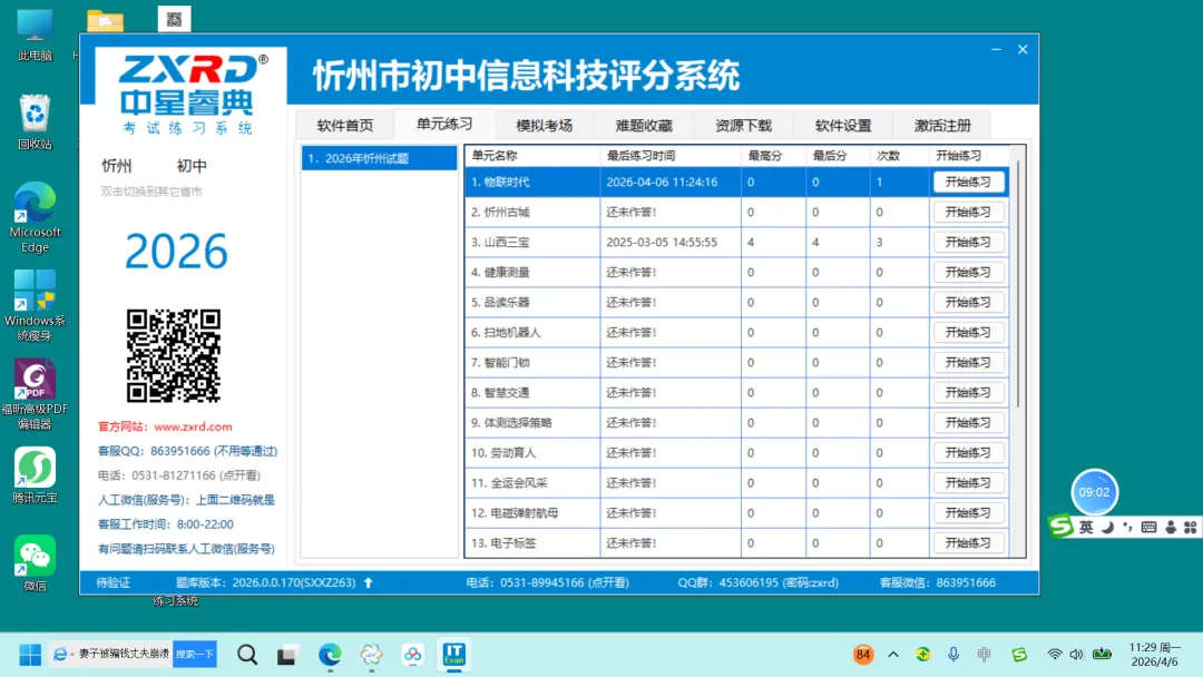 4、选择2026年忻州初中信息科技考试练习系统软件下载