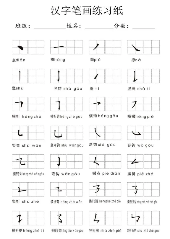 #基本笔画练习笔顺笔画大全汉字笔画练习