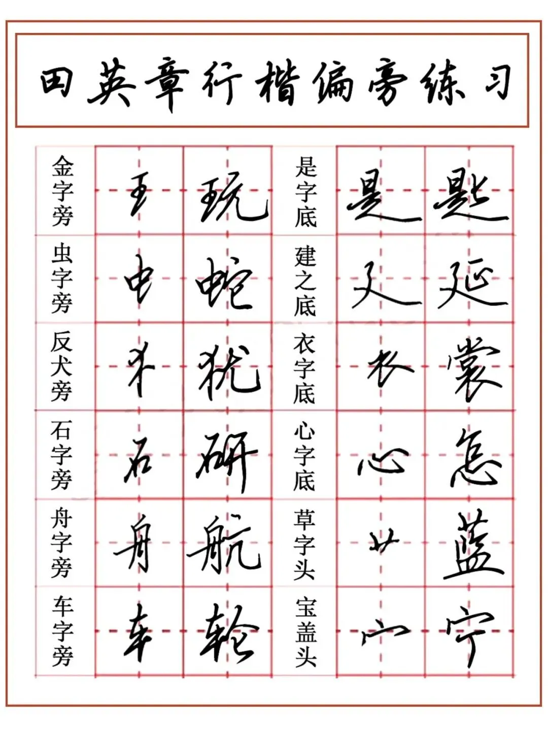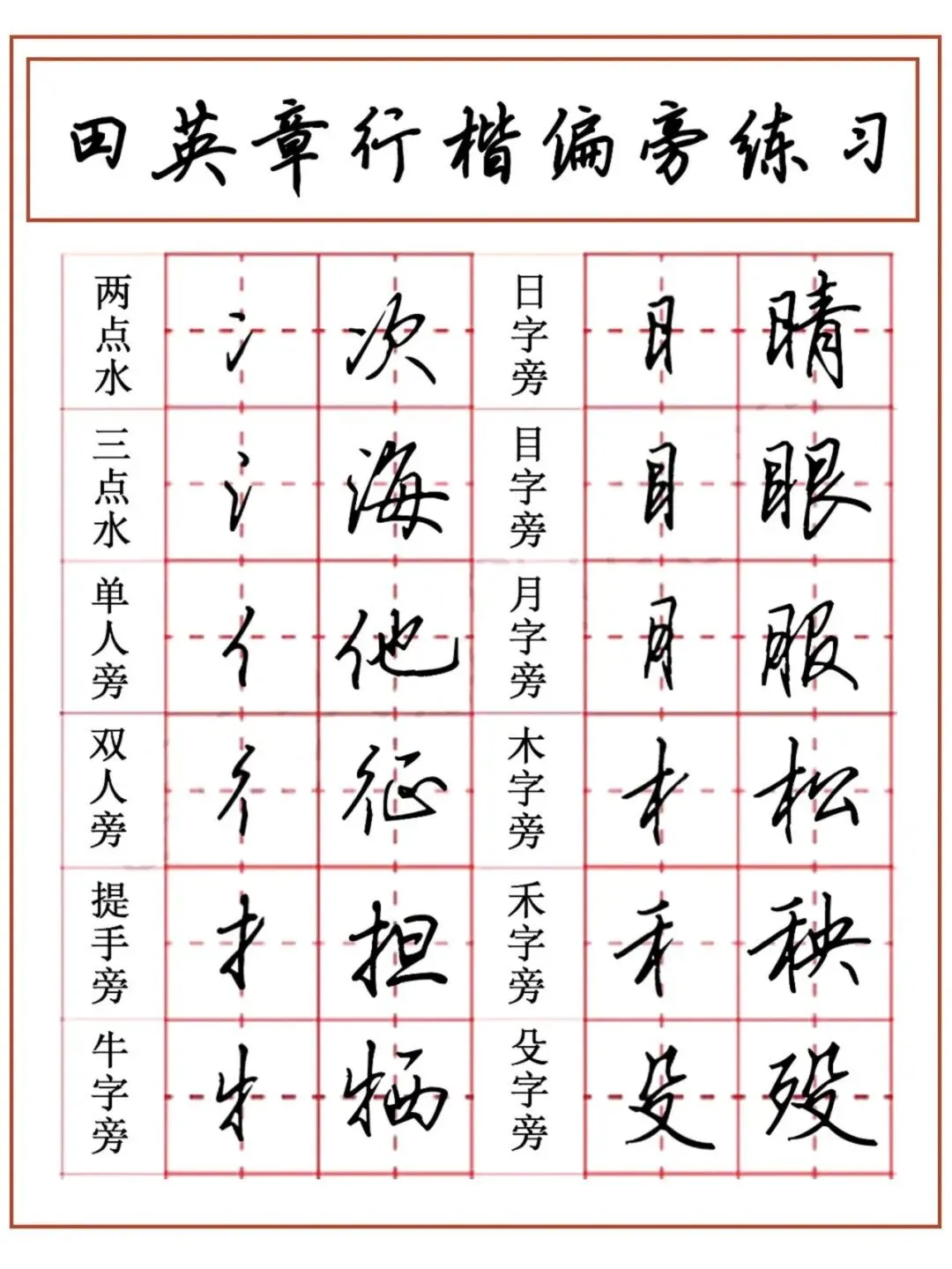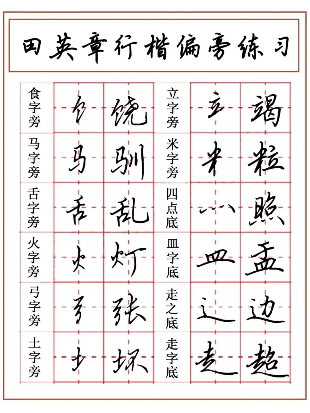 硬笔行书常用字根训练,可下载文档! 欢迎关注,收藏,下载使用!更多资料,请留言! 文件下载: 1.【超级会员V1】通过百度网盘分享的链接:https://pan.baidu.com/s/1M5pFwD0GyWEbGG_SQcvplg 提取码:cqyi 2.我用夸克网盘给你分享了「田英章老师行楷笔画部首汇总」,链接:https://pan.quark.cn/s/cd78b206db15?pwd=axuU 提取码:axuU 推荐阅读: 硬笔行书实用章法练习纸(一),随取! 硬笔行书技巧之节奏感(一) 行书常用连笔书写指导,没事多练练