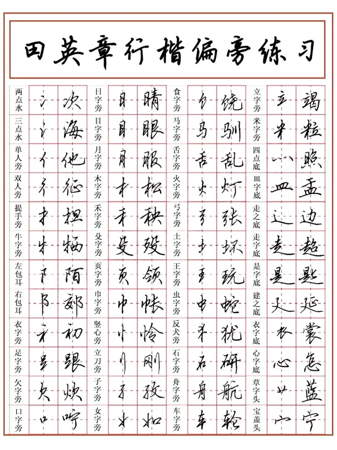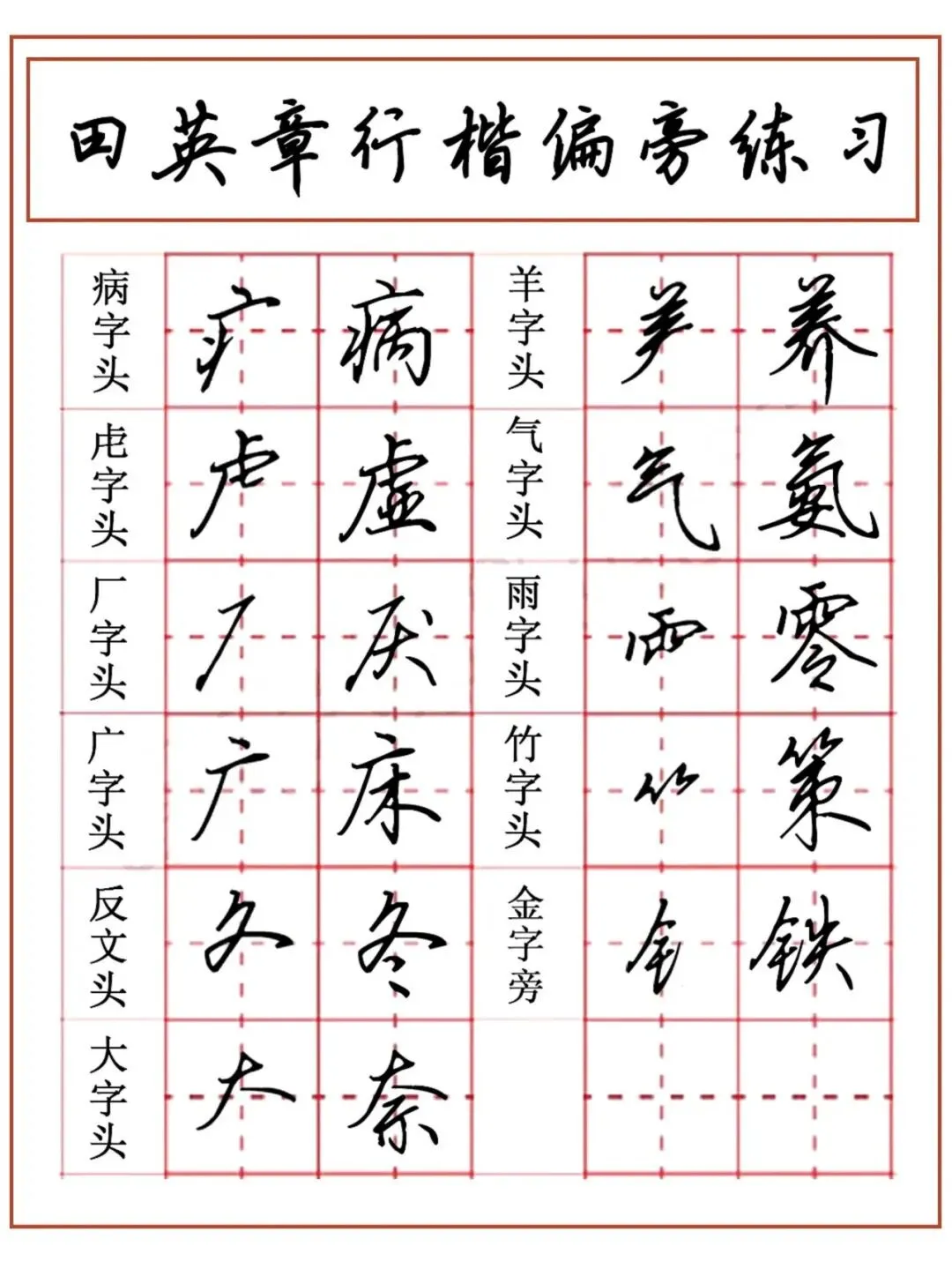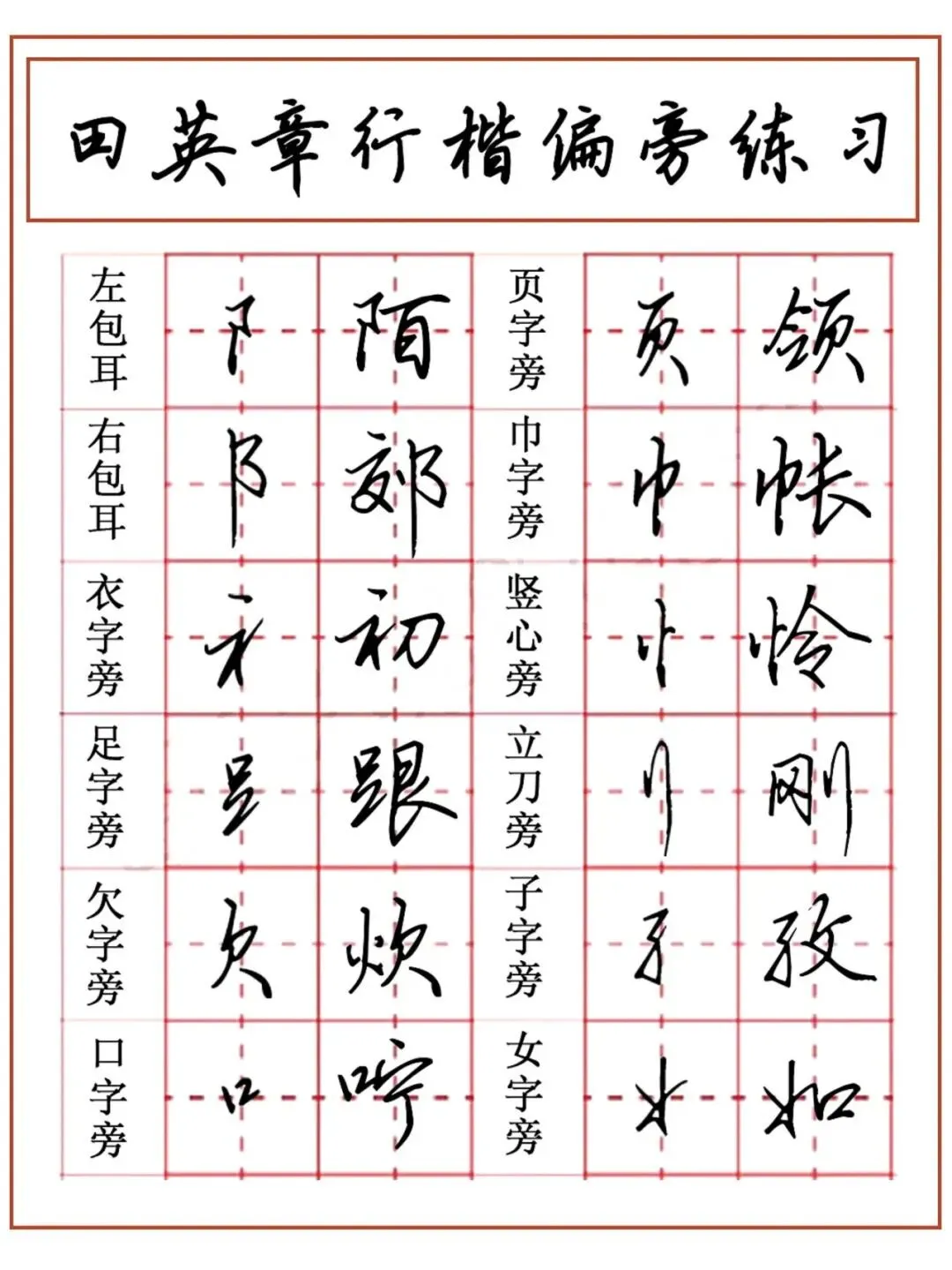 硬笔行书常用字根训练,可下载文档! 欢迎关注,收藏,下载使用!更多资料,请留言! 文件下载: 1.【超级会员V1】通过百度网盘分享的链接:https://pan.baidu.com/s/1M5pFwD0GyWEbGG_SQcvplg 提取码:cqyi 2.我用夸克网盘给你分享了「田英章老师行楷笔画部首汇总」,链接:https://pan.quark.cn/s/cd78b206db15?pwd=axuU 提取码:axuU 推荐阅读: 硬笔行书实用章法练习纸(一),随取! 硬笔行书技巧之节奏感(一) 行书常用连笔书写指导,没事多练练