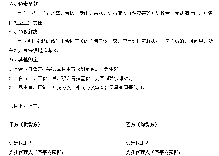 (2)接到乙方质量异议通知后,及时答复并配合处理,承担因自身原因导致的水果质量问题。