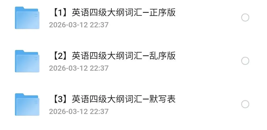 我用夸克网盘给你分享了「英语四级大纲词汇」,点击链接或复制整段内容,打开「夸克APP」即可获取。