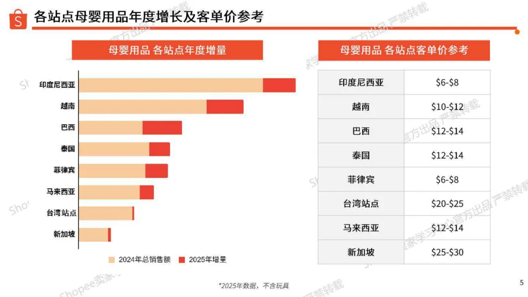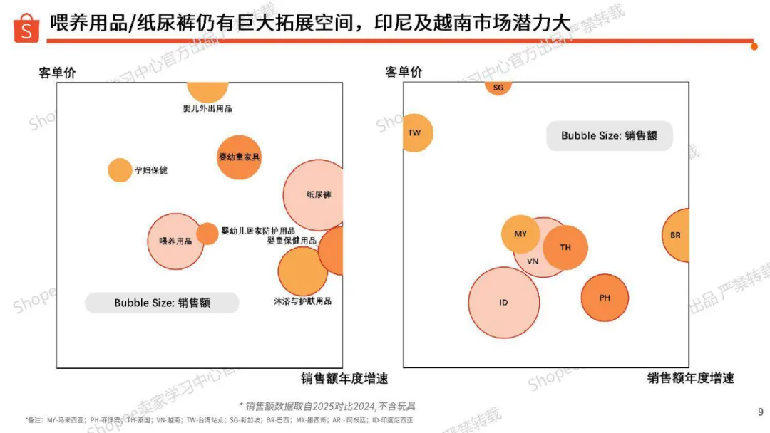 新手卖家:可优先考虑菲律宾或越南,增长快,玩法灵活,从湿巾、奶嘴、防护用品等低客单价、高频次品类入手。
