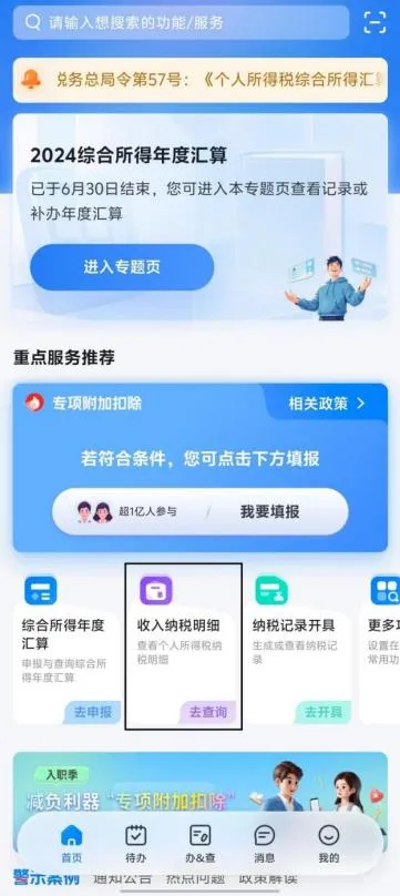 登录个人所得税App,进入首页,点击【收入纳税明细】。