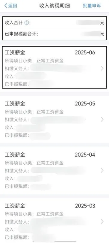 ③已申报税额合计:您已缴纳的总税额,同时提供详细的收入纳税明细数据供您查询。