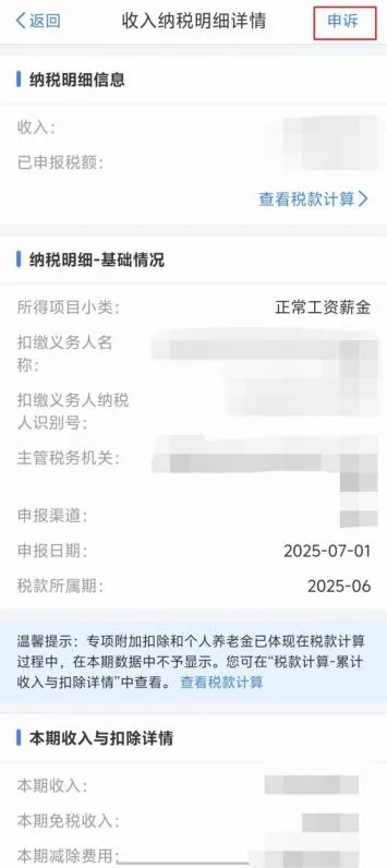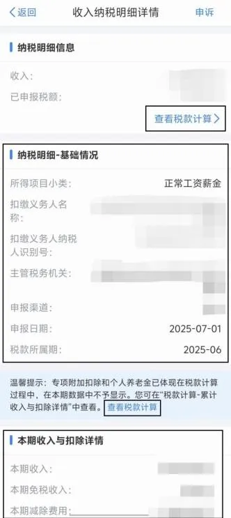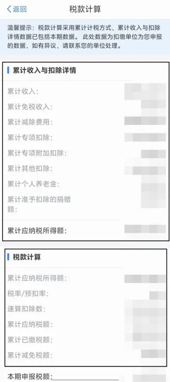 您可点击【查看税款计算】,查看累计收入与扣除详情及税款计算。