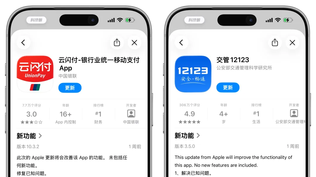 此次涉及的应用中,不乏云闪付、天猫、12123 等知名 App,甚至部分应用的更新说明还是英文版本,其中“This update from Apple”可以明确表明这次更新来自苹果,而非开发者。