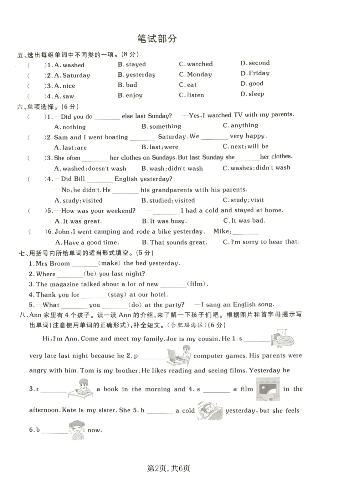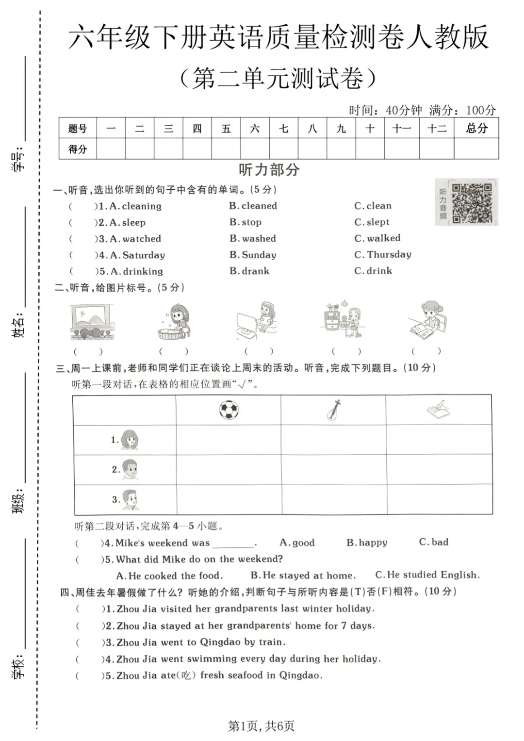 【免费下载】六年级(下)英语 第二单元质量检测卷《人教版》_1,PDF电子版,共6页,先保存,以免资源失效
