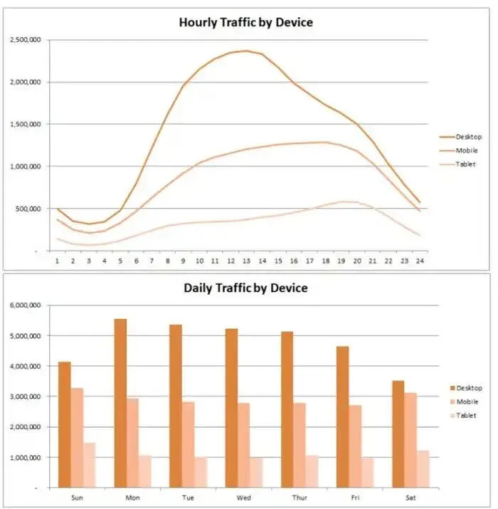 再看我不同设备的使用情况。白天电脑用得多,那是上班干活。晚上手机就上来了,电脑不用了就抱着手机瞎刷。
