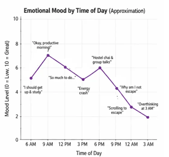 我们总觉得自己上网自己说了算,看我一天情绪变化就知道不是那么回事。早上9点精神最好,到凌晨3点直接崩了,开始胡思乱想。