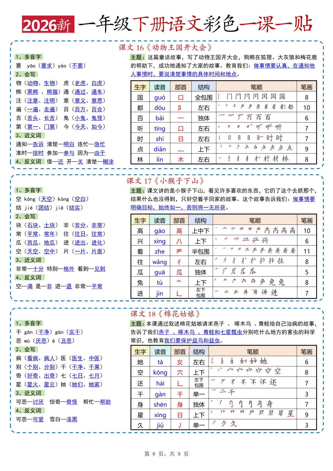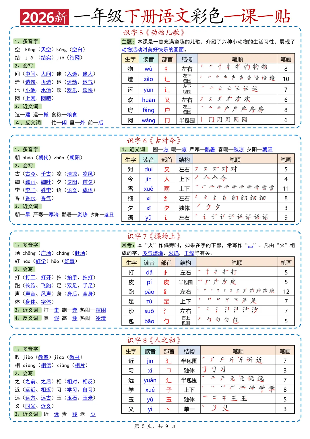 26春一年级人教版语文下册课课贴(可打印)