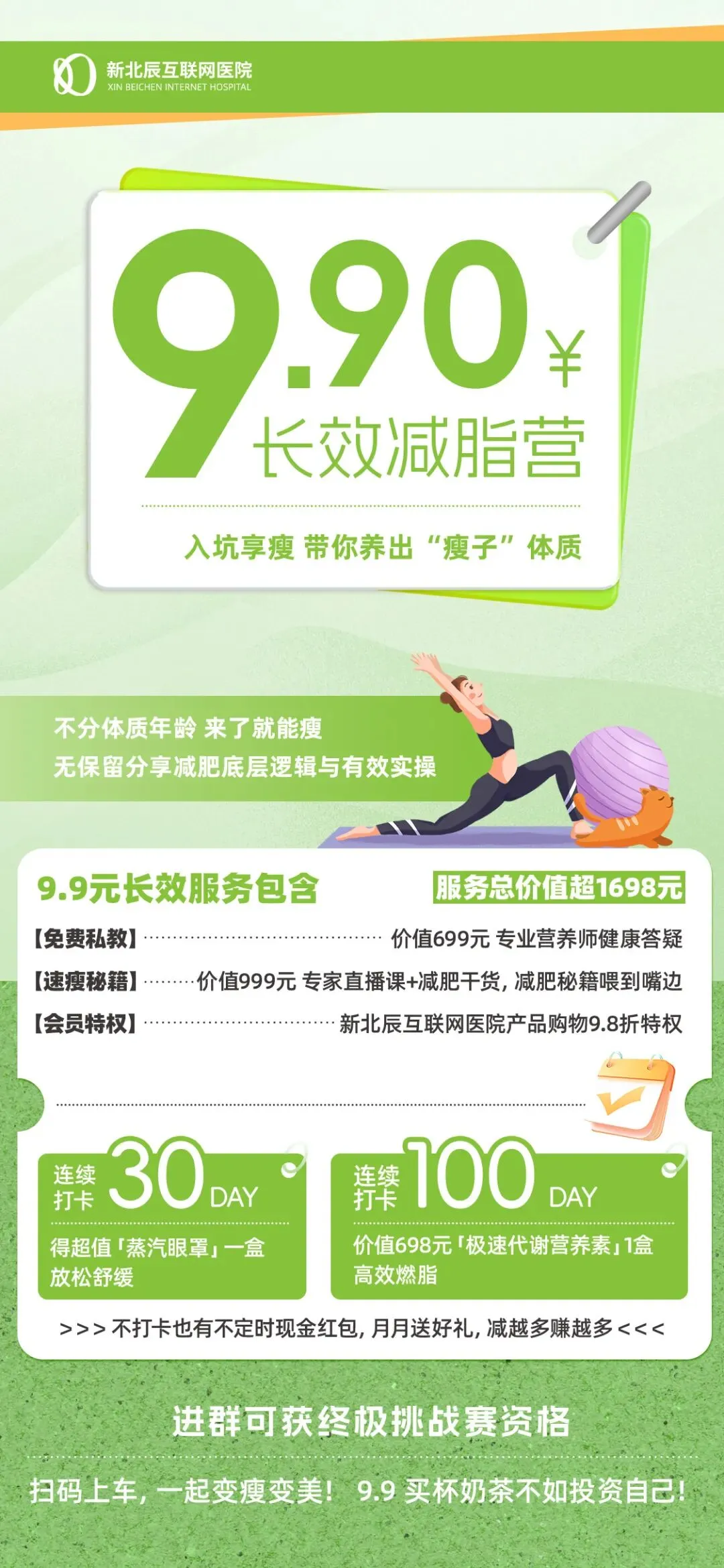 新北辰集团开设了「长效代谢提升减脂陪伴群」,价值9.9元!