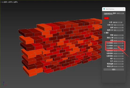 4.设置位置随机参数,可以调整砖块(或石块)的前后左右上下位置。