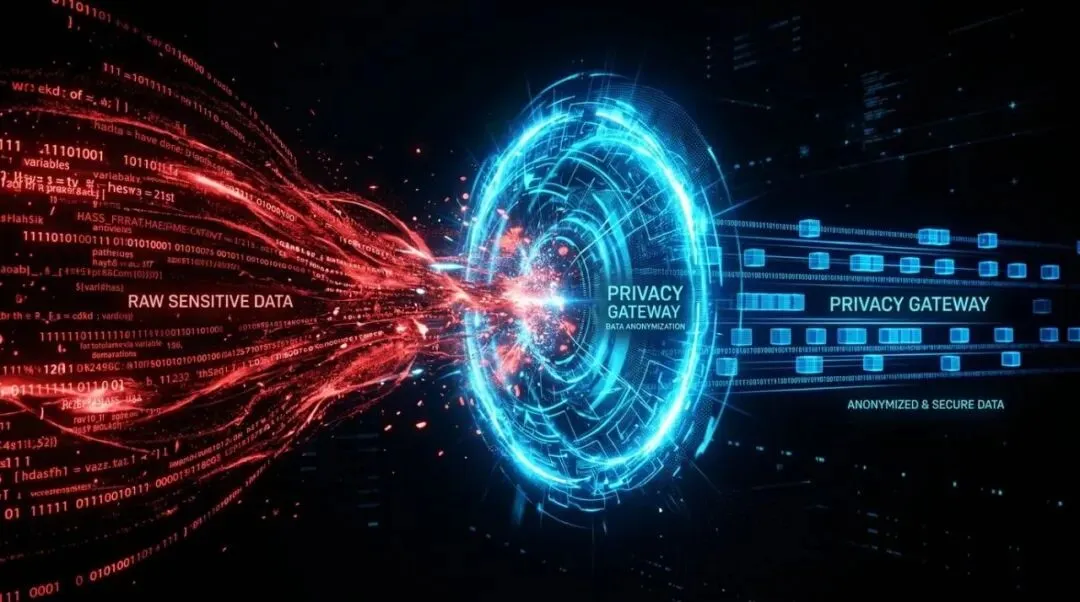靠制度喊口号没用,必须靠技术手段——部署隐私计算网关。这就是给 AI 戴上“口罩”。用户数据先经过中间层脱敏:人名变成“分析师A”,公司名变成“标的公司X”,敏感关键词直接拦截。送到云端模型的是影子数据,绝不是原始数据。
