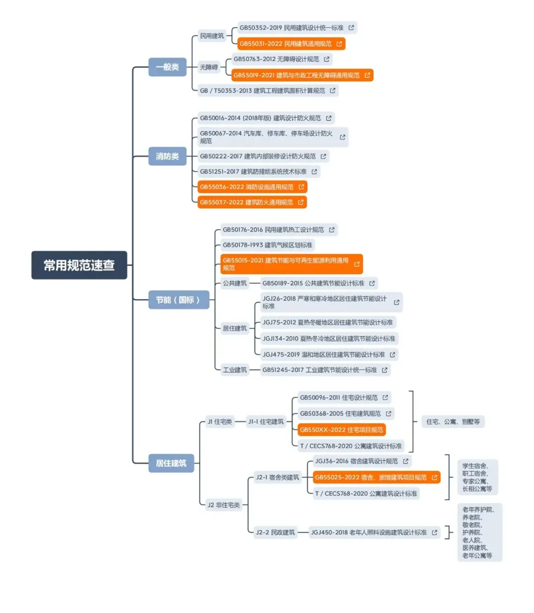 方便大家更加快速的查阅到规范,在对应的规范上插入了链接,点击思维导图框中的