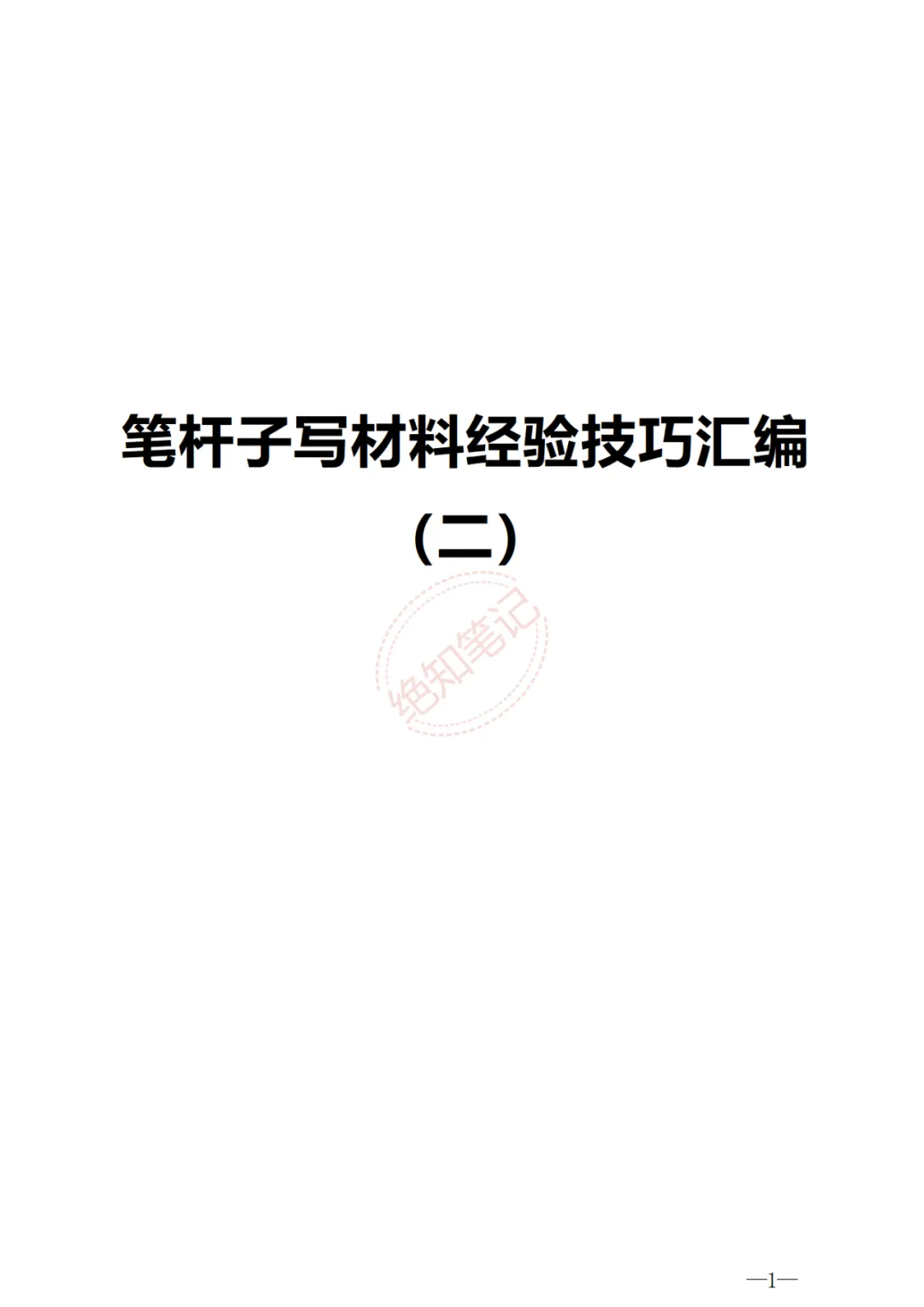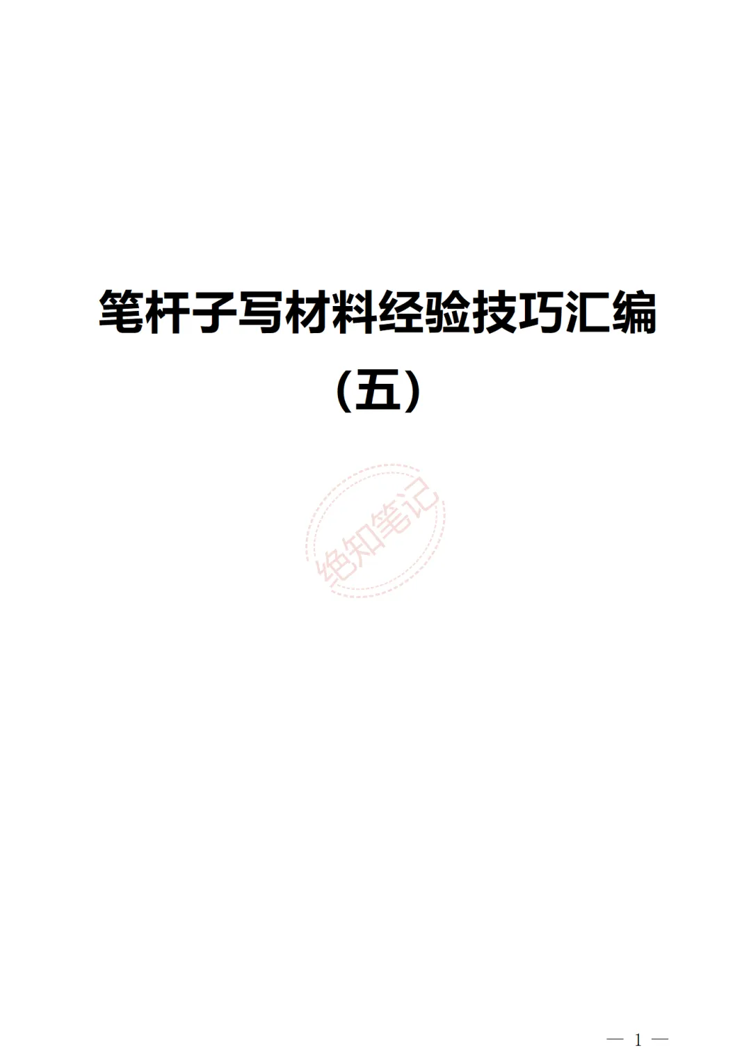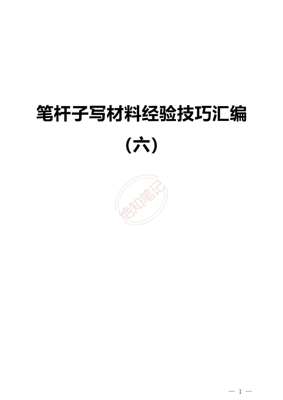 六册笔杆子写材料经验技巧汇编PDF版 今天绝知笔记为你带来一套内部自用的笔杆子写材料经验技巧汇编,内容非常丰富全面,它汇集了众多资深笔杆子的宝贵经验,既有思维方法、实战技巧,又有具体文稿写法,从理念到实操一应俱全,堪称写材料宝典。 该汇编一共6册,合计200多万字,2500多页,PDF电子版,高清无水印,可随身阅读。适合体制内材料岗、考公以及想要提升公文写作水平的各位朋友参考学习。 下面是目录及部分内容展示: