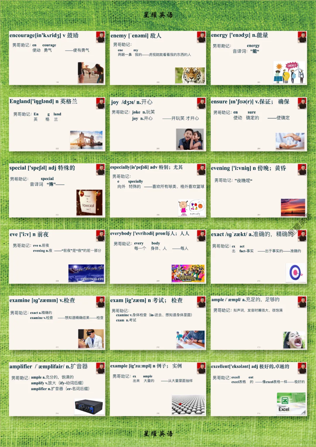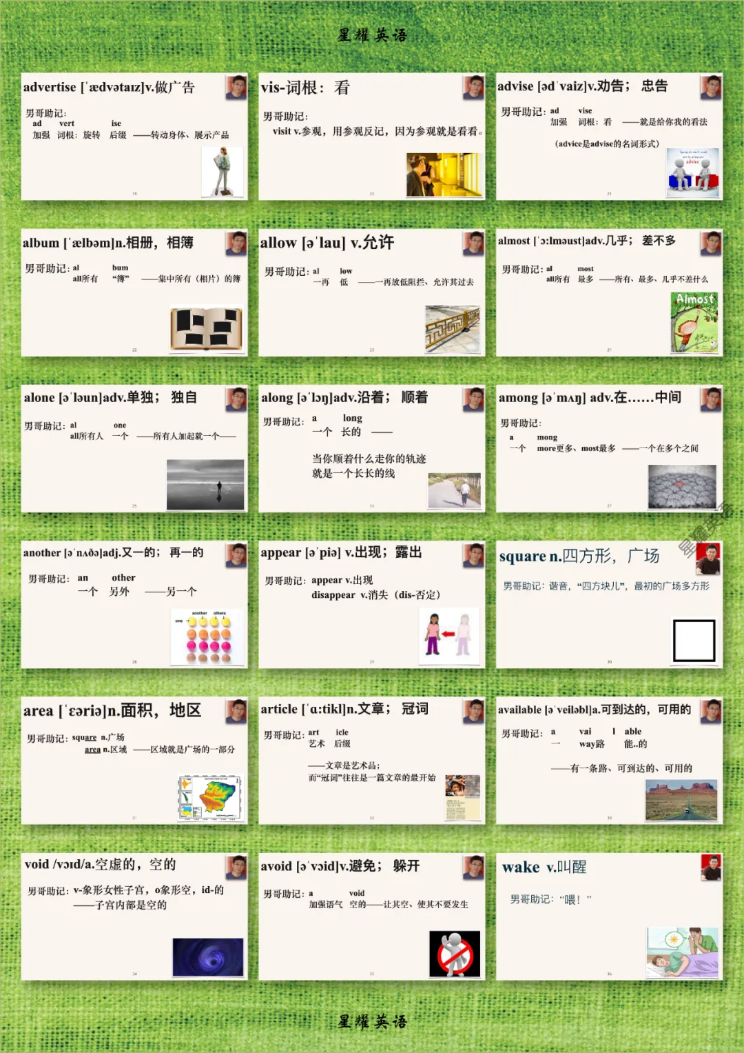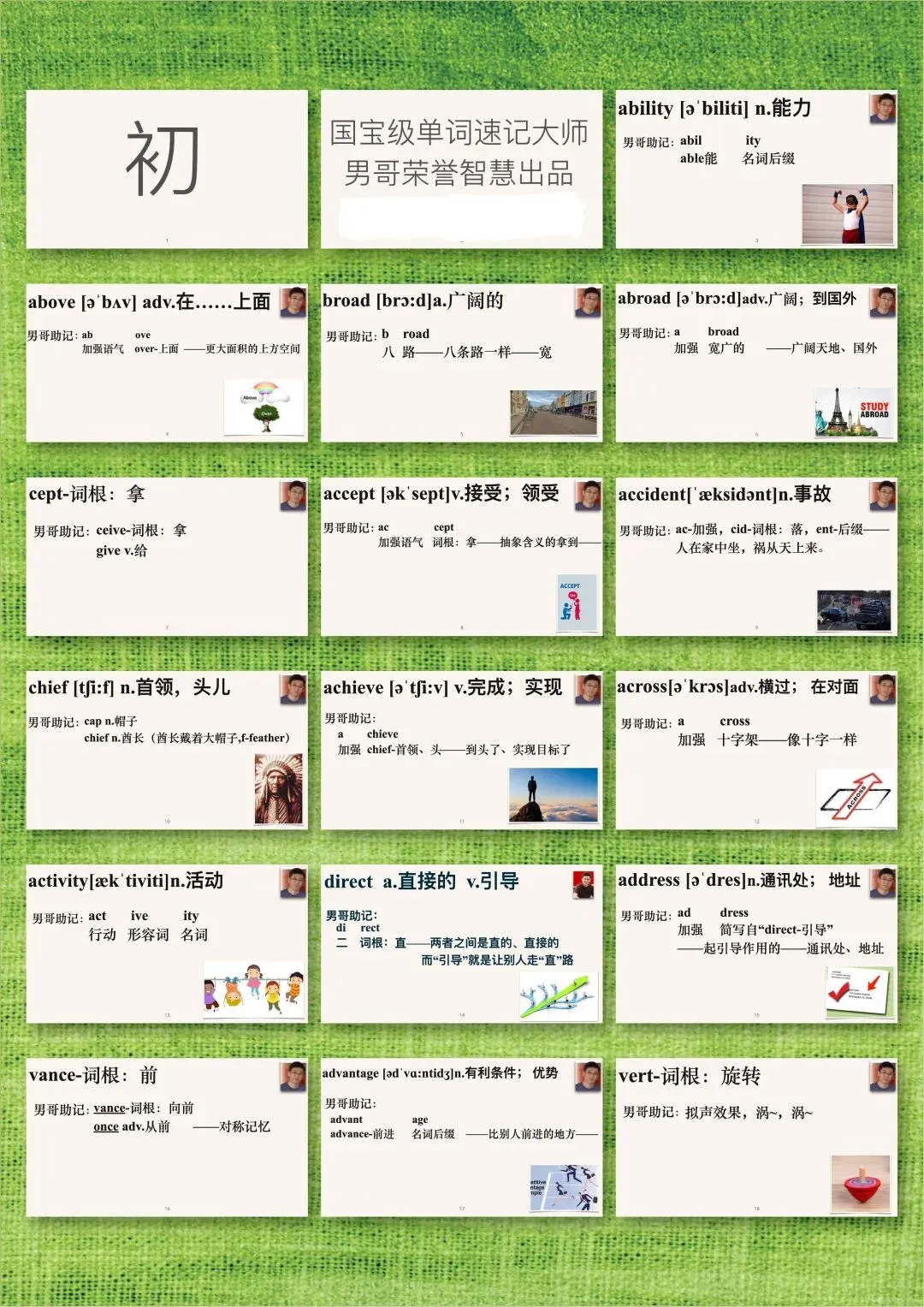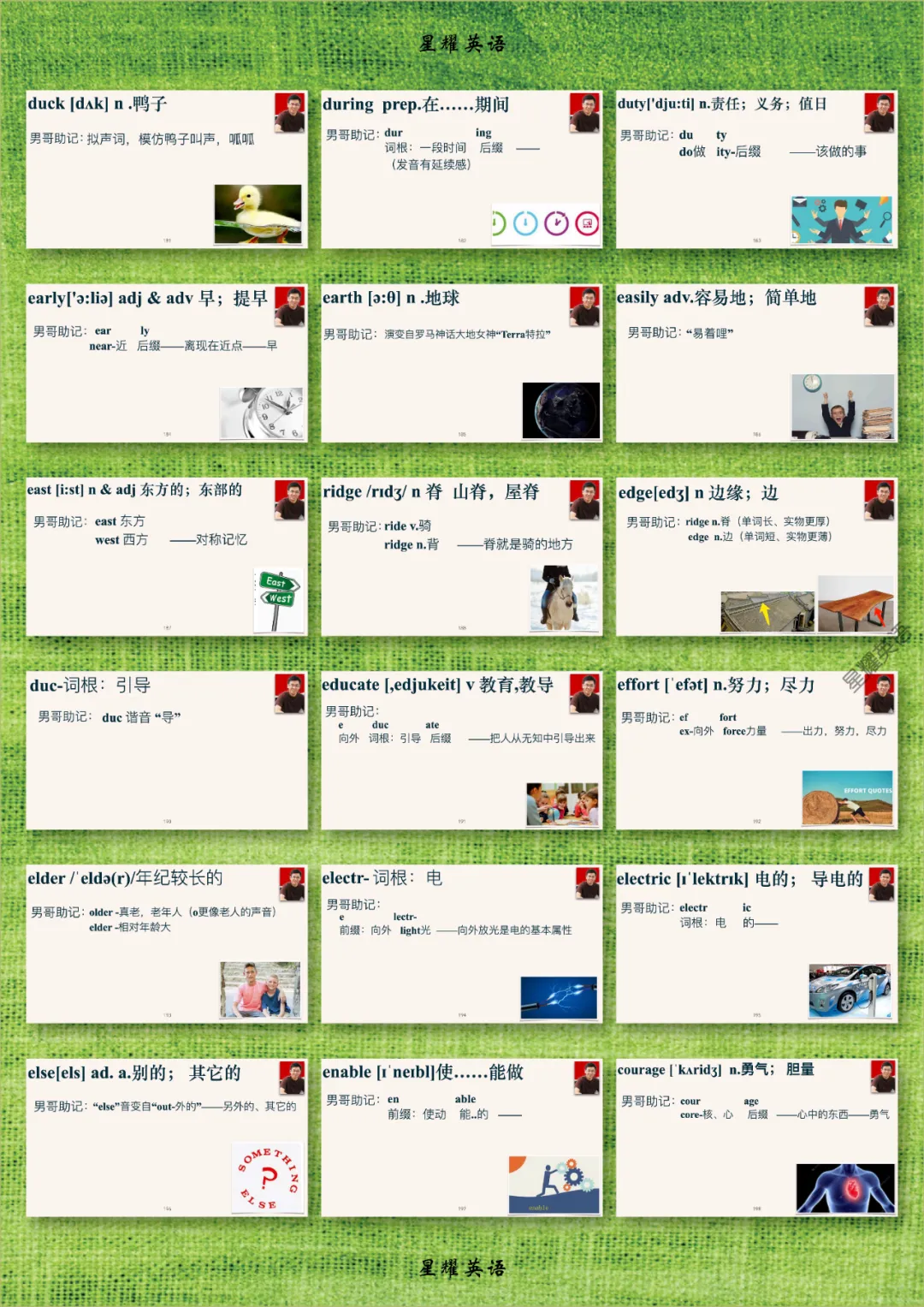 除了初中英语,男哥单词记忆法, 还有小学英语,高中英语的记忆法,都包含PDF,PPT和视频。