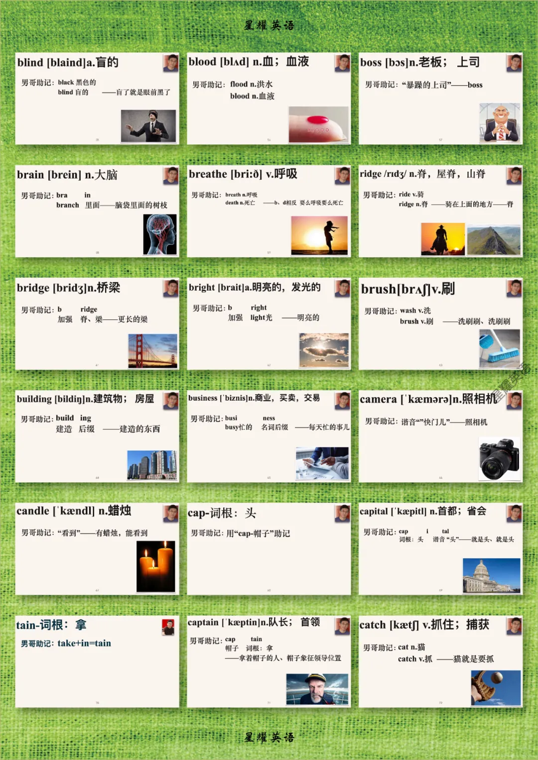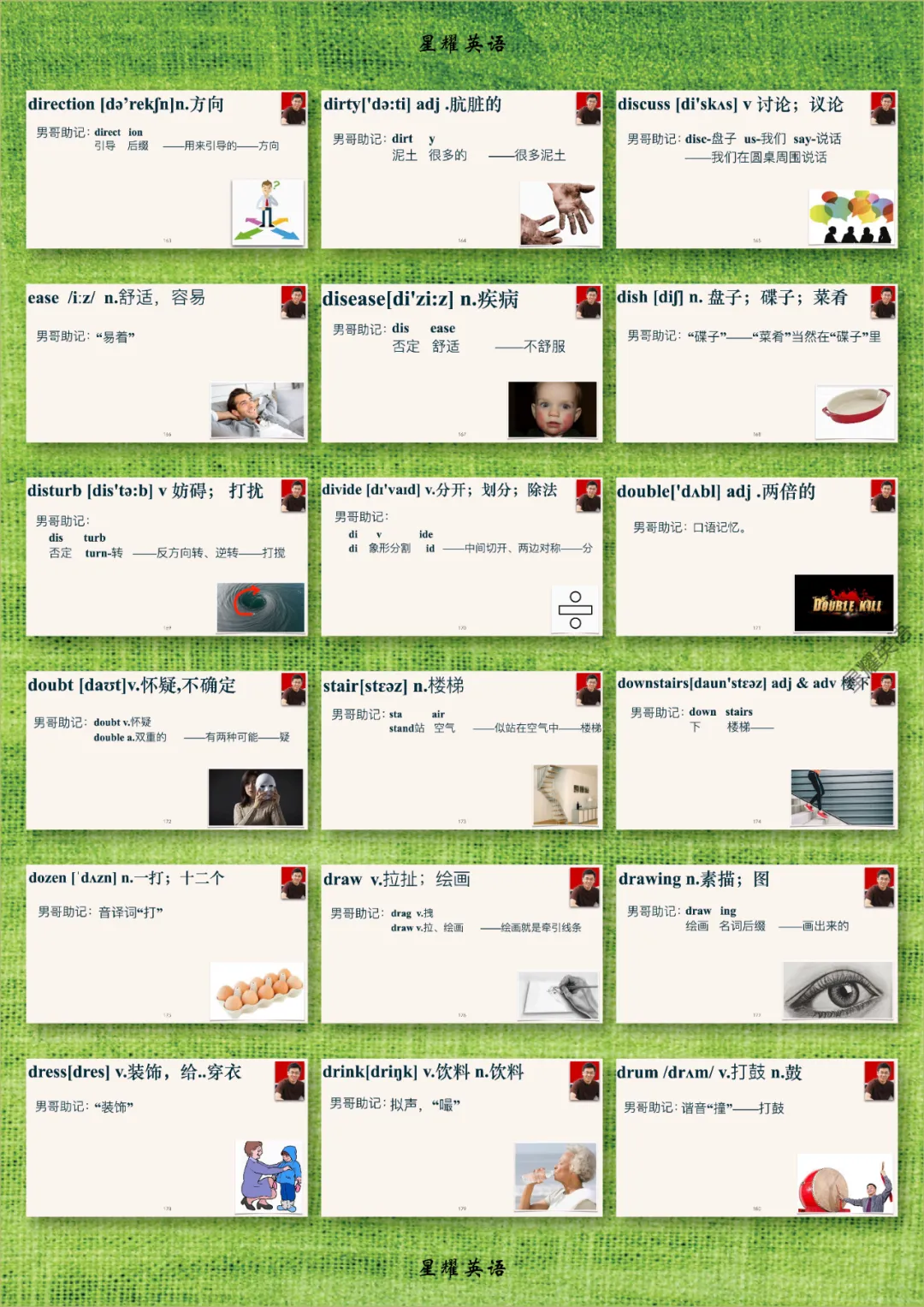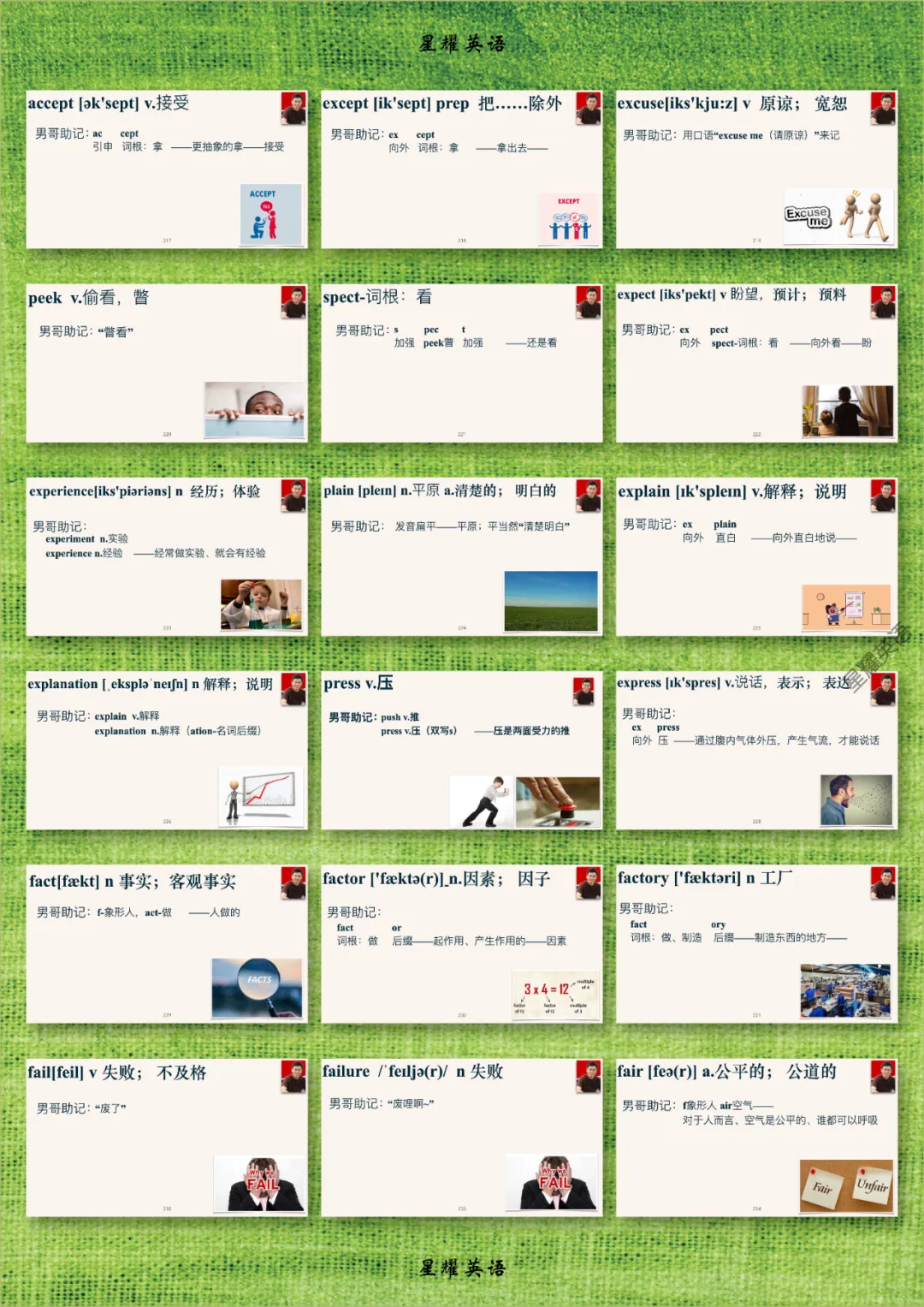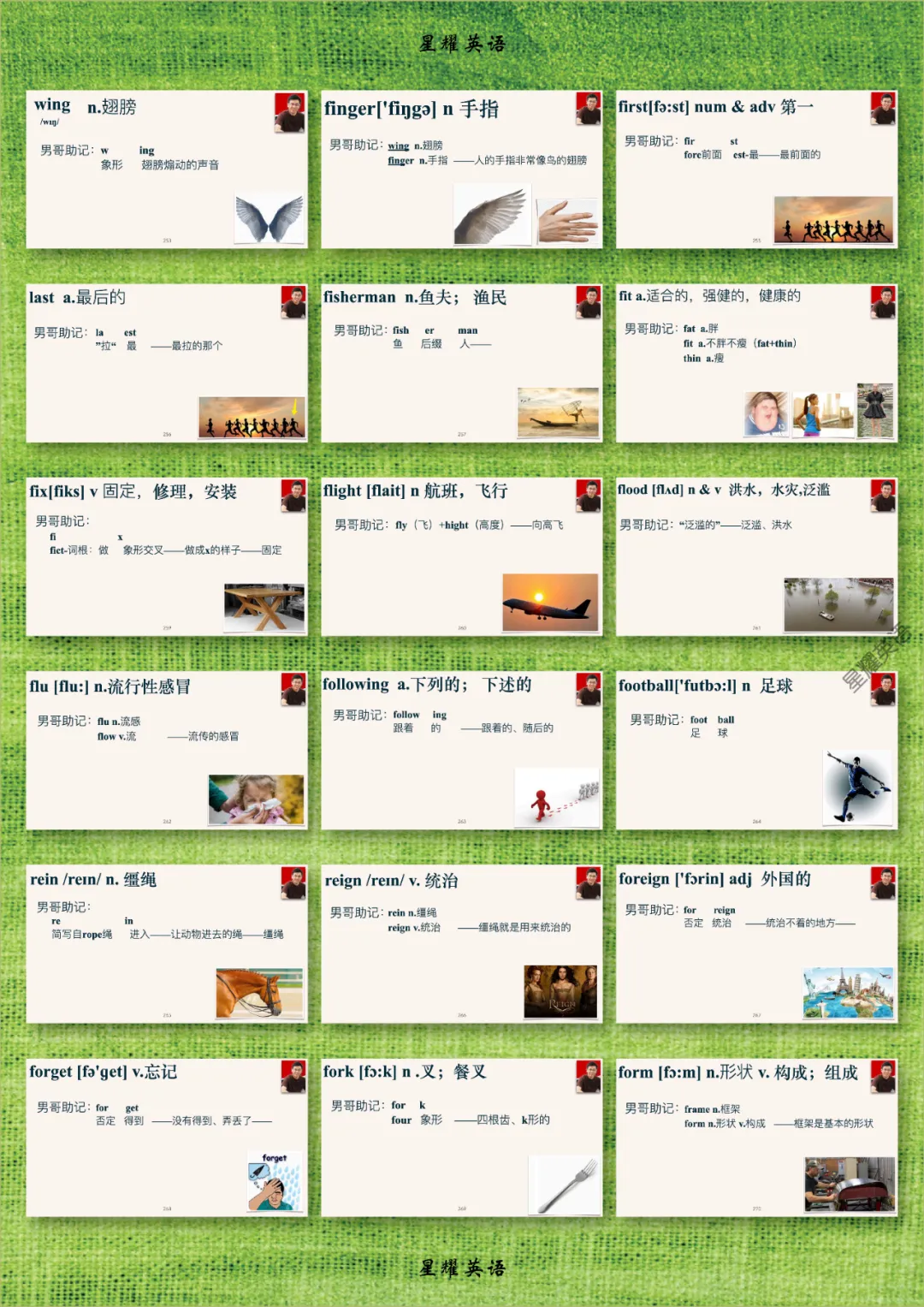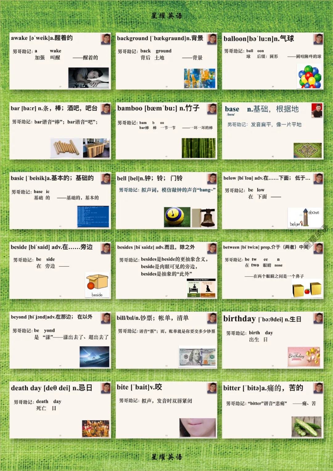除了初中英语,男哥单词记忆法, 还有小学英语,高中英语的记忆法,都包含PDF,PPT和视频。