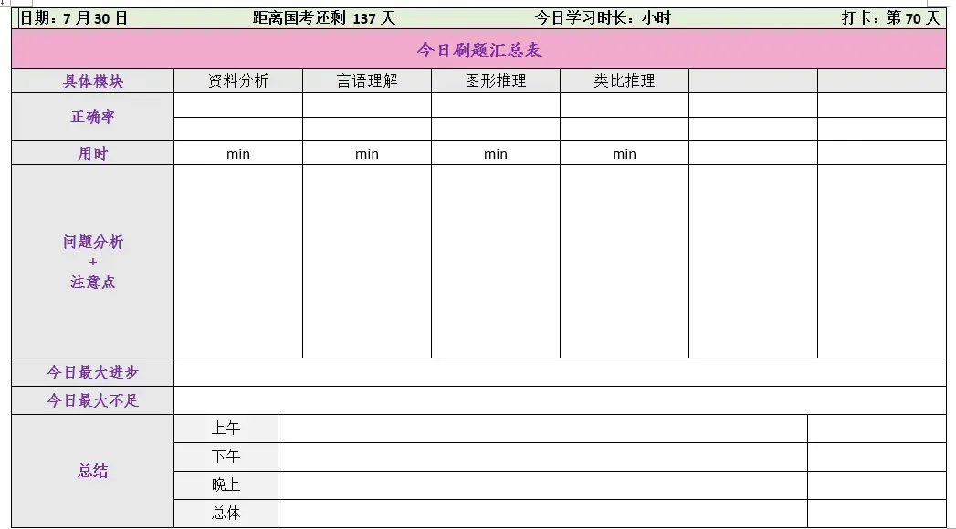 学霸考公计划表(电子版pdf)