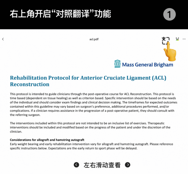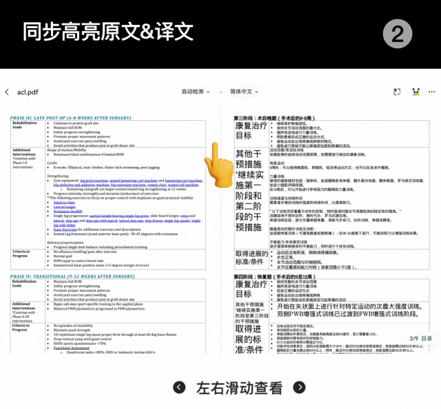 用平板看PDF时,点击右上角“对照翻译”,就能左右对照看原文和译文。