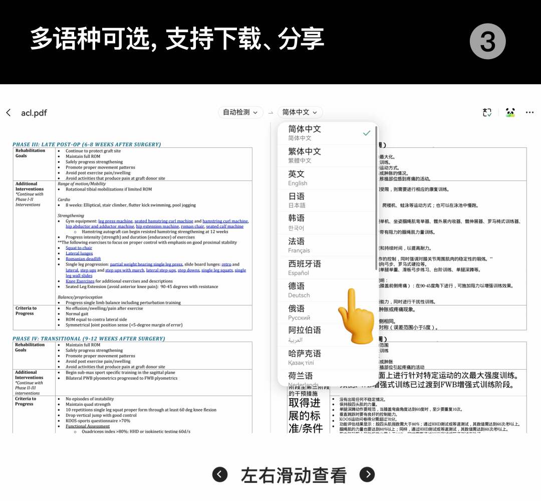 需要分享时,点击右上角“更多”里的“导出译文”,就能下载、转发。