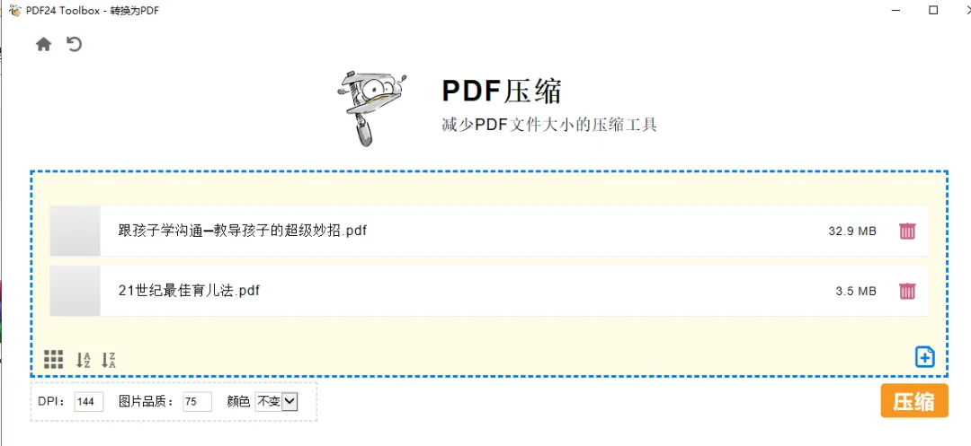 PDF压缩:大体积PDF经压缩,品质保持不变,且体积变小。