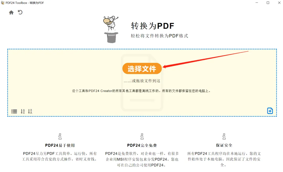 以转化为PDF为列:点击选择文件或者直接把需要转化成PDF文件拖拽到软件中即可