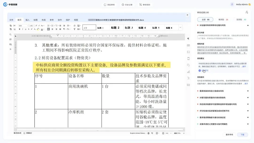 医院采购文件审核AI助手上线,医院采购合规“数字守门人”