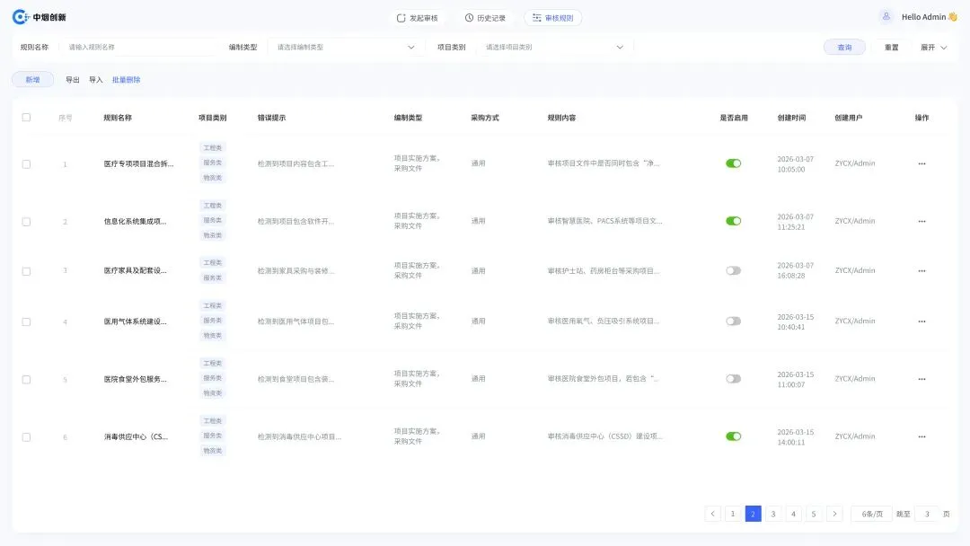 中烟创新采购文件审核AI助手所承载的,是一套可落地、可验证、可持续优化的智能化审核机制。助力医院在合规与效率的平衡木上走得更稳、更远,让每一份采购文件都经得起法律的检验!