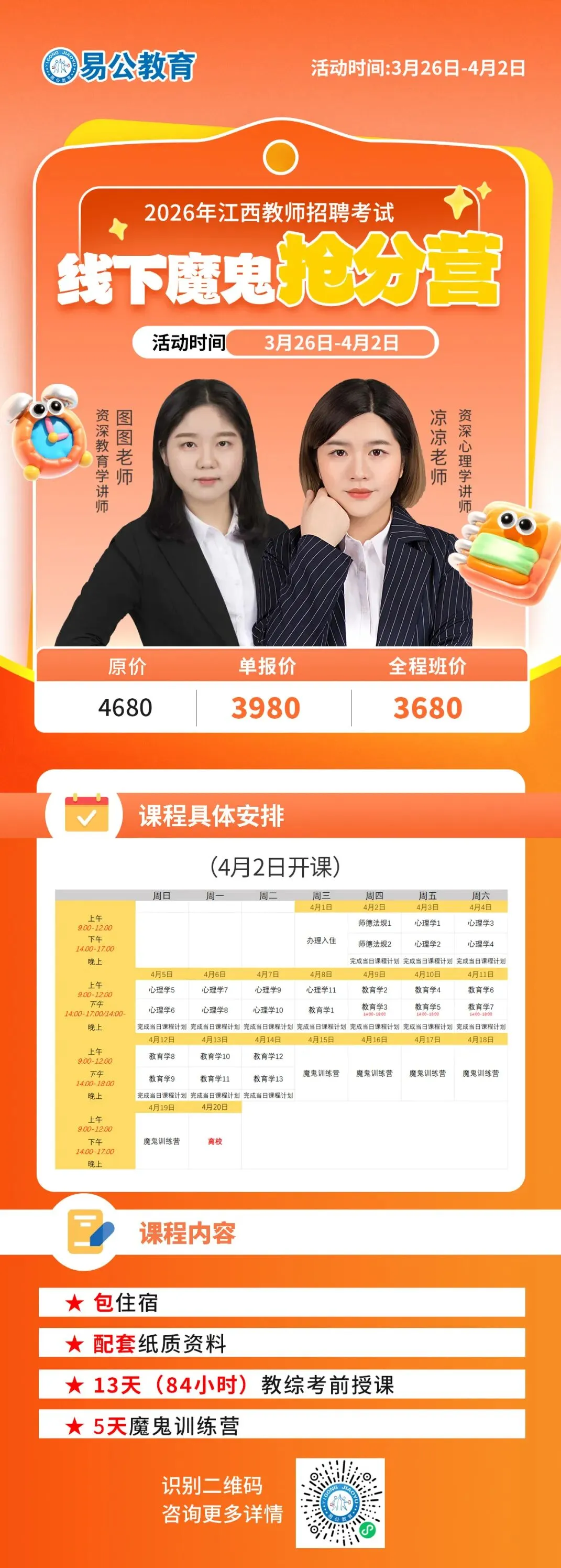 这不是普通的教综冲刺课这是历年口碑造就的实力派这是江西超1.5万考生用脑投票的选择这是考前教综突击必选易公的理由!