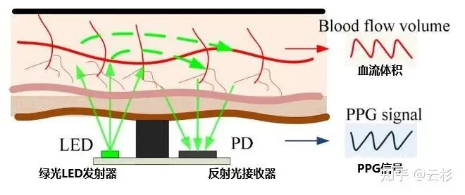 它会向皮肤发射特定波长的绿光,血液中的血红蛋白会吸收一部分光,再反射一部分回来。